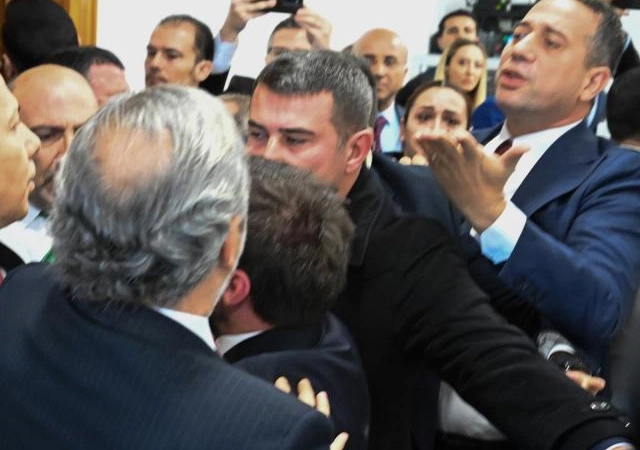 "'Bugün ben Genel Kurul'da yaşadığım ve gördüğüm olaylardan dolayı büyük bir utanç duyuyorum' demişti. 'Burada sözlerin havada uçuşması lazım, sözlerin konuşulması lazım. Hiç kimsenin kaba kuvvete, kabadayılığa, şiddete herhangi bir şekilde tevessül etmemesi lazım' demişti. Şimdi ben kendisinin bu sözlerinin gereğini yapmasını bekliyorum. Utanç duyduğu bu arbedeyi, bu şiddeti, bu kabadayılığı yapan arkadaşları hakkında gereğini yapmasını bekliyoruz."