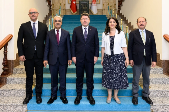 Adalet Bakanı Yılmaz Tunç, DEM Parti heyetini kabulüne ilişkin, "Görüşmede Terörsüz Türkiye sürecine ilişkin kapsamlı değerlendirmelerde bulunduk. Cumhurbaşkanımız Sayın Recep Tayyip Erdoğan'ın güçlü liderliği ve sağlam iradesi, devletimizin kurumlarının tam bir koordinasyon ve uyumuyla yürütülen süreçte atılan adımları ve yapılan çalışmaları konuştuk." ifadelerini kullandı.