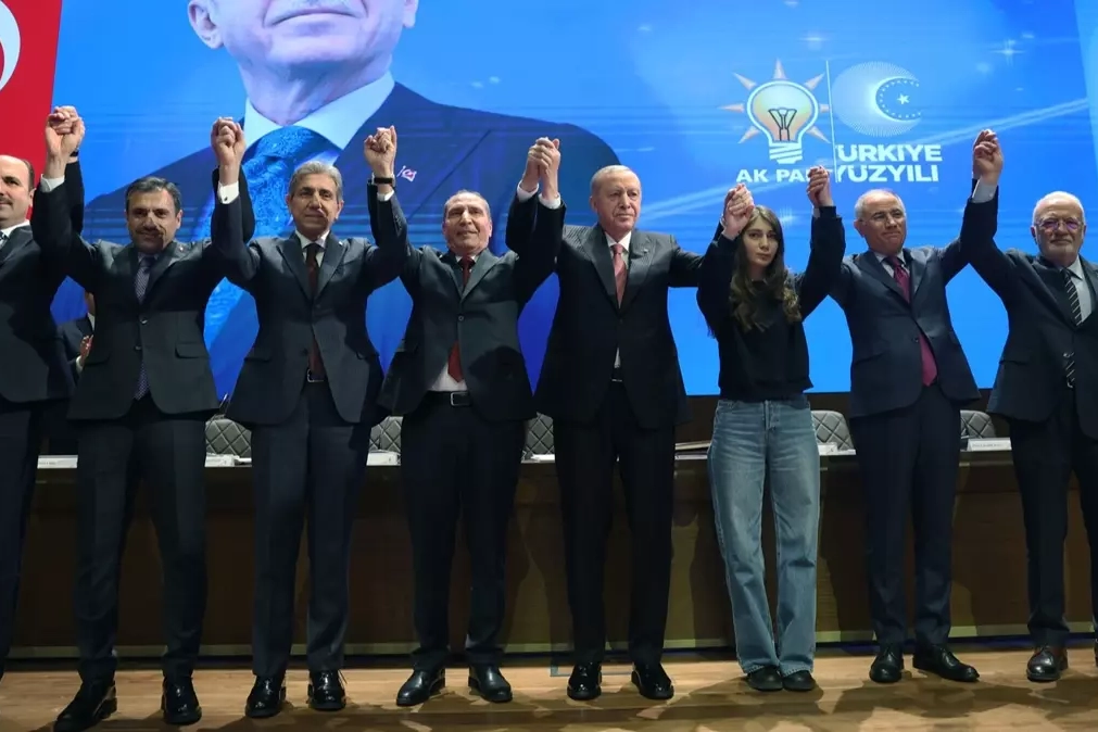 Cumhurbaşkanı Erdoğan, AK Parti Merkez Karar ve Yönetim Kurulu (MKYK) toplantısı öncesinde partisine katılan 4 belediye başkanına rozetlerini taktı.