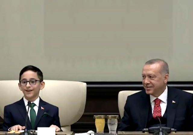 Erdoğan'ın ardından Cumhurbaşkanı Erdoğan'ın koltuğu 1 günlüğüne oturan çocuk cumhurbaşkanı, açıklamalar yaptı ve soru cevapladı.