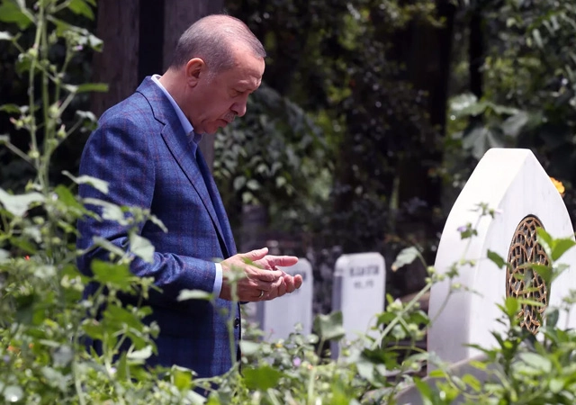 Erdoğan ayrıca, 15 Temmuz 2016'daki darbe girişiminde şehit olan Erol Olçok'un kabrine de ziyaret gerçekleştirdi.