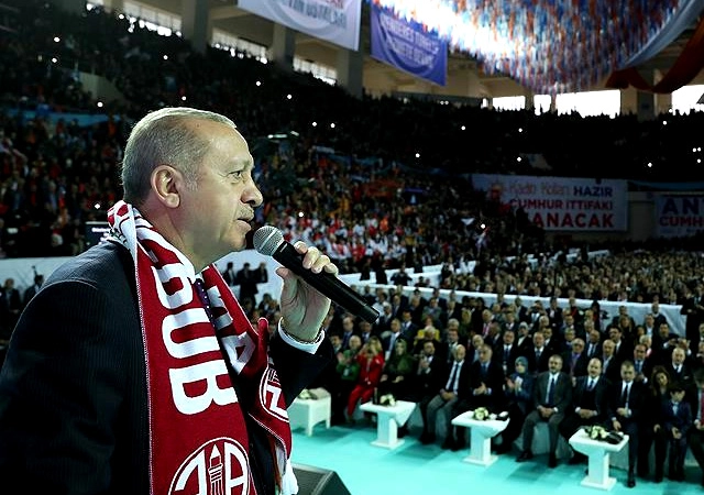 Son 5-6 yılda ülkemizin önünü kesmek için oynanan oyunlara karşı verdiğimiz mücadele tarihi öneme sahiptir. Ülkemizin bu mücadelesinin önündeki en büyük engel çarpık ve kiyafetsiz muhalefet anlayışıdır. Bu parti yıllarca Gazi Mustafa Kemal'in istismarını yapmıştır hala yapıyor. CHP işi artık bölücülerle birlikte hareket etmeye kadar vardırdı. Milletimize olan sevgimizle gerektiğinde ölümün üzerine dahi yürümekten geri durmadık. Vesayet güçlerinden terör örgütlerine ve darbecilere kadar bu ülkenin, bu milletin hakkına, hukukuna, istiklaline, istikbaline saldıran kim varsa hepsinin karşısına dikildik.''