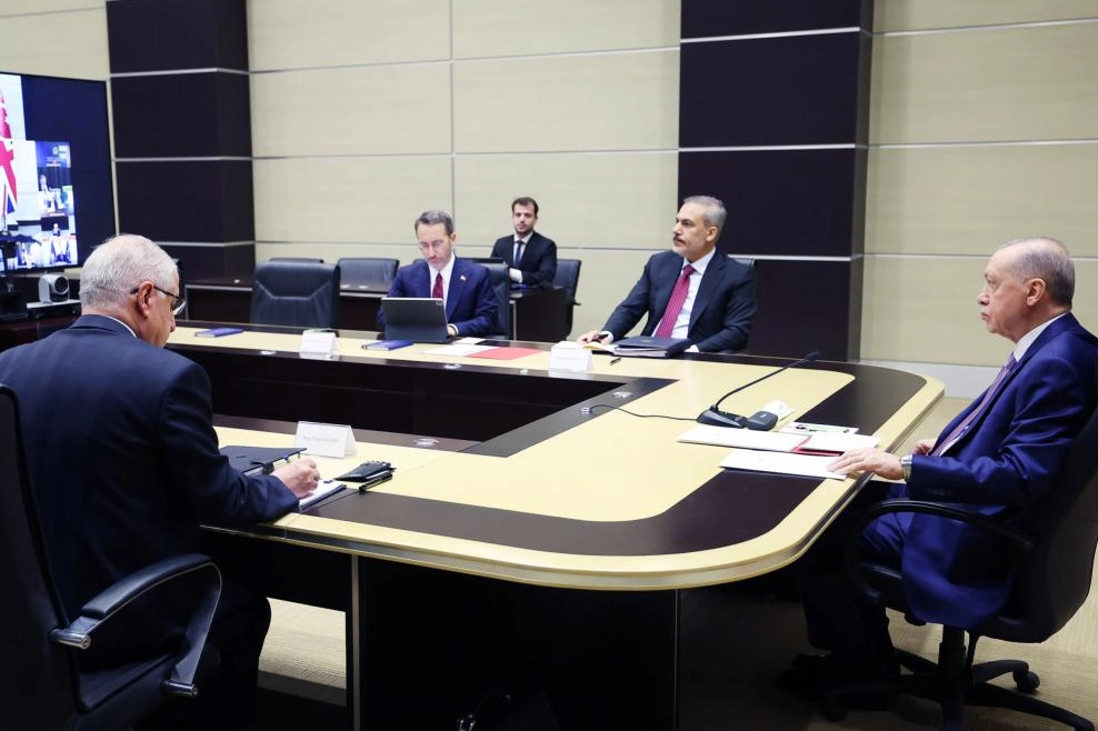 Çevrimiçi Liderler Toplantısı'na katılan Erdoğan'a Dışişleri Bakanı Hakan Fidan, Milli Savunma Bakanı Yaşar Güler ve Cumhurbaşkanlığı İletişim Başkanı Fahrettin Altun eşlik etti.