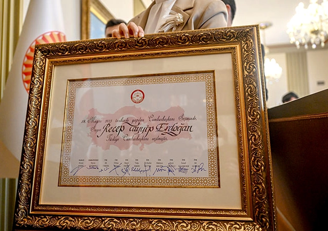 Konuşmaların ardından Yener, Cumhurbaşkanı Erdoğan'ın mazbatasını TBMM Başkanı Şentop'a takdim etti.