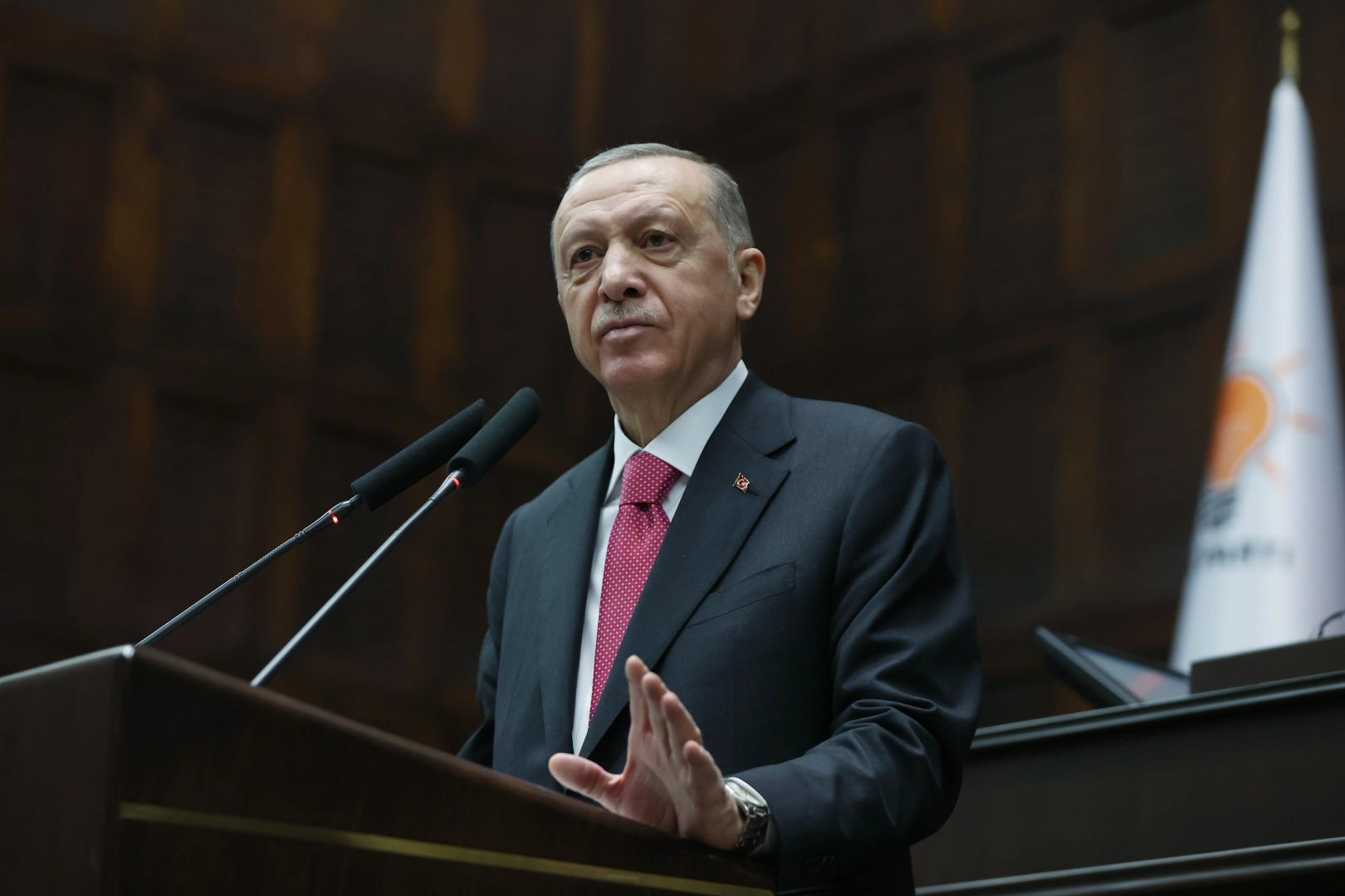 Aziz milletim değerli milletvekili arkadaşlarım, kıymetli misafirler sizlerin kalbi duygularımla muhabbetle selamlıyorum. Çeşitli medya mecraları üzerinden bizleri takip eden tüm vatandaşlarıma yol ve dava arkadaşlarıma teşkilatımızın cefakar mensuplarına sizlerin aracılığıyla selamlarımı, sevgilerimi gönderiyorum. Buradan, milletin kürsüsünden, 13 yıllık mücadelenin ardından muhteşem ve muazzam bir zafere imza atan Suriyeli kardeşlerimizi kemal-i hürmetle selamlıyorum.