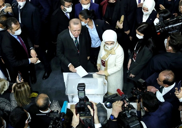 Cumhurbaşkanı Erdoğan oyunu 1 No'lu sandıkta kullandıktan sonra salondaki partilileri selamladı.