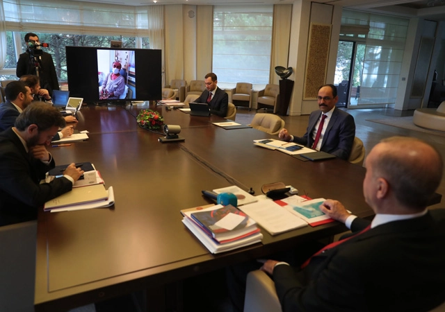 Görüşmeyi Tarabya'daki Huber Köşkü'nden yapan Cumhurbaşkanı Erdoğan'a, İletişim Başkanı Fahrettin Altun ve Cumhurbaşkanlığı Sözcüsü İbrahim Kalın da eşlik ettiler.