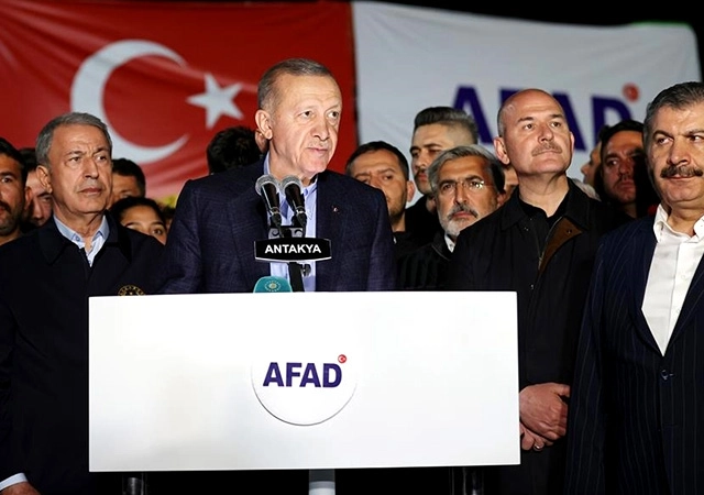 Antakya'da yıkılan ve ağır hasar alan binaların görüntüsü nedeniyle, gençlik yıllarından beri onlarca kez geldiği kenti tanımakta zorlandığını dile getiren Cumhurbaşkanı Erdoğan, "Depremin ağır kış şartlarının hüküm sürdüğü günlerde meydana gelmesi işleri daha da zorlaştırdı. Buna rağmen, devlet ve millet el ele vererek bakanlıklarımızla, belediyelerimizle, sivil toplum kuruluşlarımızla, gönüllülerimizle, depremzedelerimizin imdadına koştuk. Evet o sabahtan itibaren askerimiz buradaydı, jandarmamız buradaydı, polisimiz, gönüllülerimiz buradaydı, hep birlikte el ele verdiler, dayanışmayla sivil arama kurtarma ekipleriyle mücadeleyi sonuna kadar sürdürdüler. Şartların en güç olduğu yer olan Hatay'a ulaşmak için gerçekten büyük mücadele verildi. Tabi bu tür afetlerde trafik, bütün bunların hakikaten yollar açılarak yoluna konulması öyle zannedildiği gibi kolay değildi. Biz bunları Van'da, Bingöl'de yaşadık, ülkemizin diğer yerlerindeki afetlerde yaşadık ama bunları yaşamayanlar sadece fitne, fesat, buna benzer şeyleri uydurarak tüm vatandaşların, milletin hafıza kayıtlarına girmeye çalışıyorlar. Hamdolsun kısa sürede zorlukları aşarak arama kurtarmadan gıda ve giyim yardımına, acil barınma ihtiyacının giderilmesinden kalıcı konutlara kadar tüm çalışmaları yoluna koyduk” dedi.