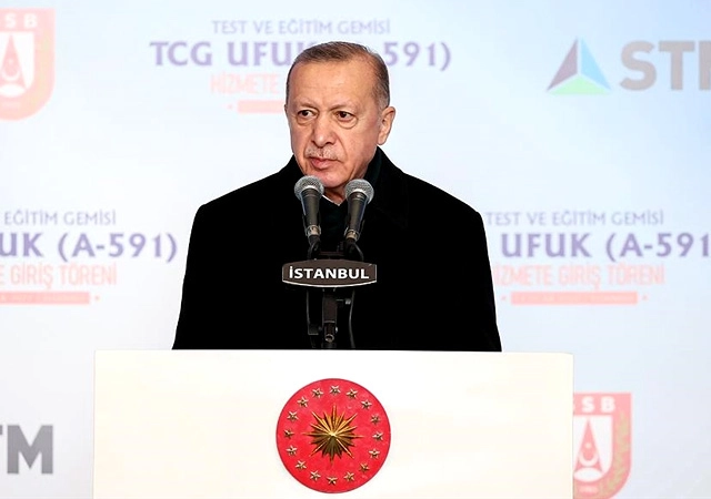 İlk istihbarat gemisi Ufuk'un milli mühendislik kabiliyetleriyle inşa edildiğinin altını çizen Erdoğan, "Türk savunma sanayii ürünlerini kullanan ülke sayısı da her geçen yıl artıyor. Savunma ve havacılık ihracatımızın bu yıl sonunda 4 milyar doları aşmasını bekliyoruz." dedi.
