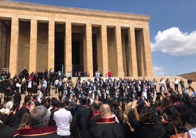 Baro başkanları, Anıtkabir'de Aslanlı Yol'dan yürüdükten sonra Atatürk'in mozolesi önünde saygı duruşunda bulundu.