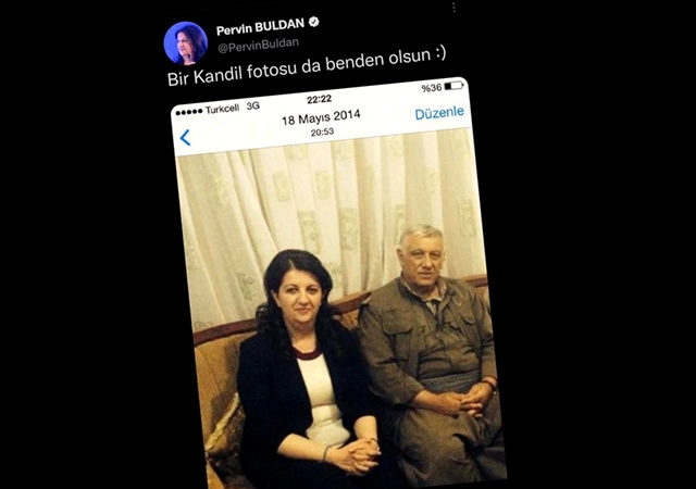 Buldan, PKK kurucusu Cemil Bayık ile birlikte çekildiği fotoğrafını "Bir Kandil fotosu da benden olsun:)" notuyla sosyal medya hesabından paylaşmıştı.