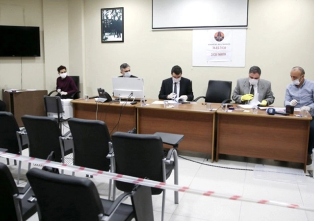 İhale toplantısına katılan kişilerin maskeleri ve aralarındaki sosyal mesafe, dikkat çekti.