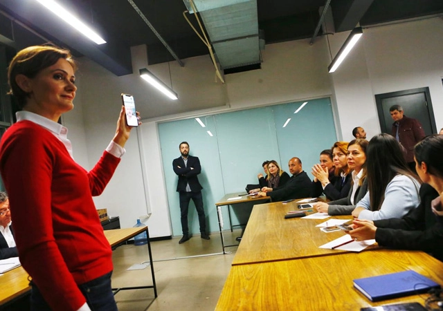 Canan Kaftancıoğlu, CHP'de İstanbul İl Yönetim Kurulu Toplantısı başkanlığında, cep telefonundaki FaceTime programı üstünden CHP Başkanı Kılıçdaroğlu'nu görüntülü aradı.