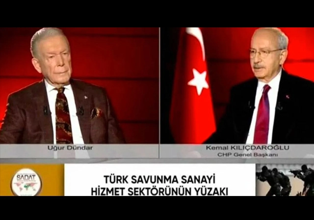 CHP Genel Başkanı Kemal Kılıçdaroğlu'nun gazeteci Uğur Dündar'a konuk olduğu TV100 ekranlarında, Kılıçdaroğlu'nun paramiliter bir kuruluş olmakla suçladığı SADAT'ın reklamı verildi.