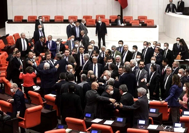 TBMM Genel Kurulunda, CHP'nin grup önerisinin görüşmeleri sırasında MHP Düzce Milletvekili Ümit Yılmaz ile CHP Mersin Milletvekili Cengiz Gökçel arasında yumruklaşma yaşandı.