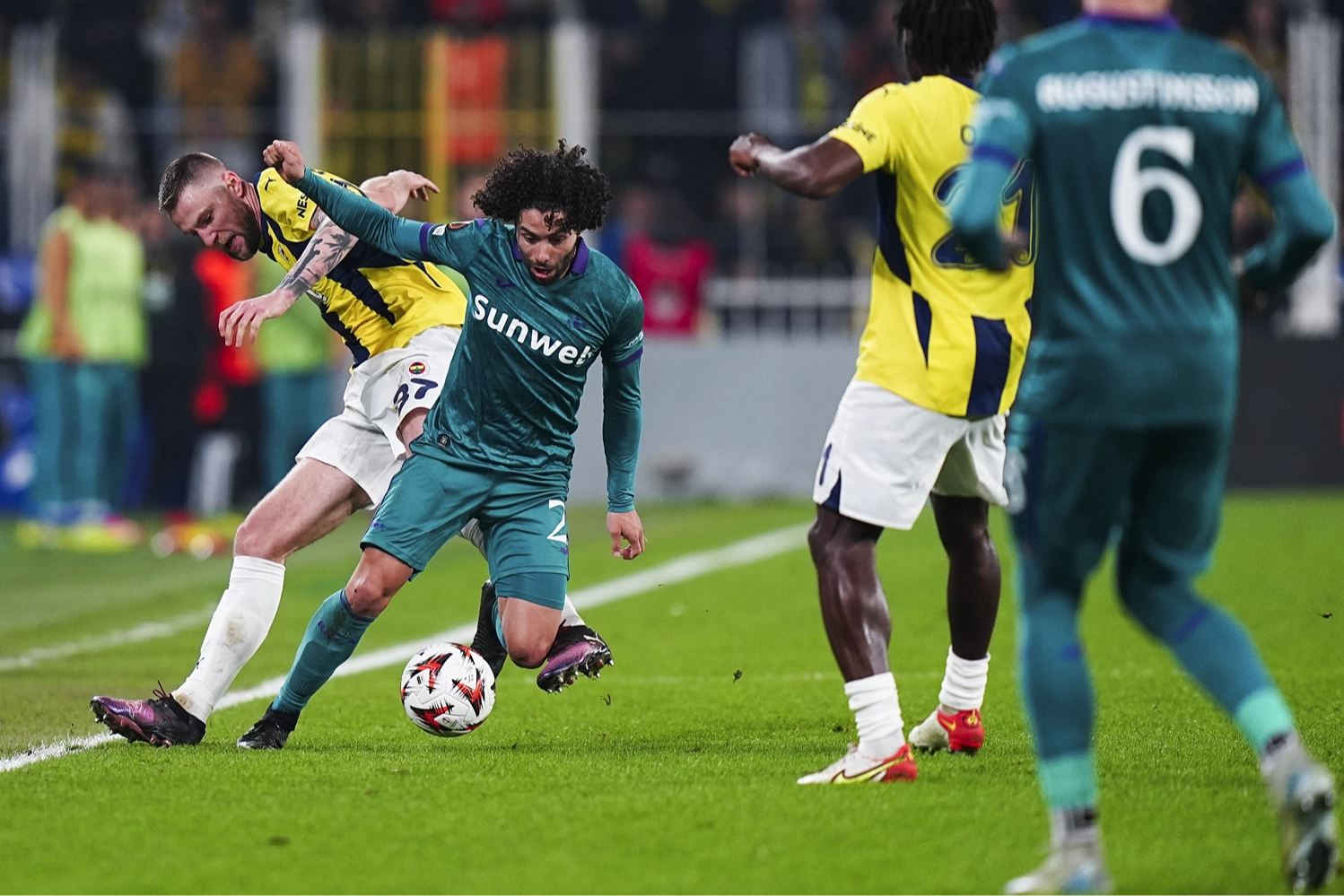 Mücadelenin 11. dakikasında Dusan Tadic'in golü ile 1-0 öne geçen sarı-lacivertliler, Edin Dzeko ve Yusuf en-Nesyri'nin golleri ile 3-0 öne geçti.