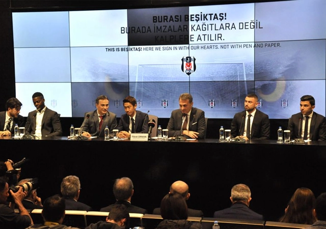 Beşiktaş Spor Klubü bugün yeni transferleri için imza töreni düzenledi. Yeni transferler olan Burak Yılmaz, Shinji Kagawa, Nicolas Isimat-Mirin ve Muhayer Oktay'ın katıldığı Vodafone Park'ta düzenlenmiş olan bu organizasyon ile birlikte basın mensuplarının karşısına çıktılar.