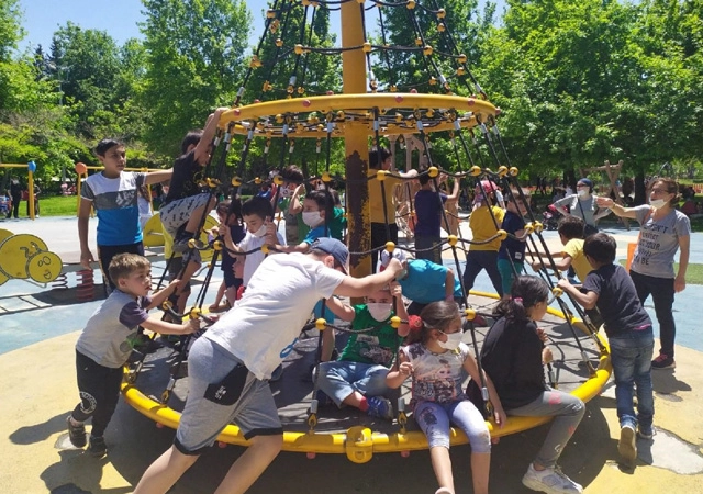 Parklara gelen 14 yaş ve altındaki çocukların maske taktığı ve sosyal mesafe kuralına uyarak oyun oynadığı görüldü. Kadıköy Kalamış Parkına gelen çocuk, "Çok mutluyum parka geldiğim için" diye konuştu.