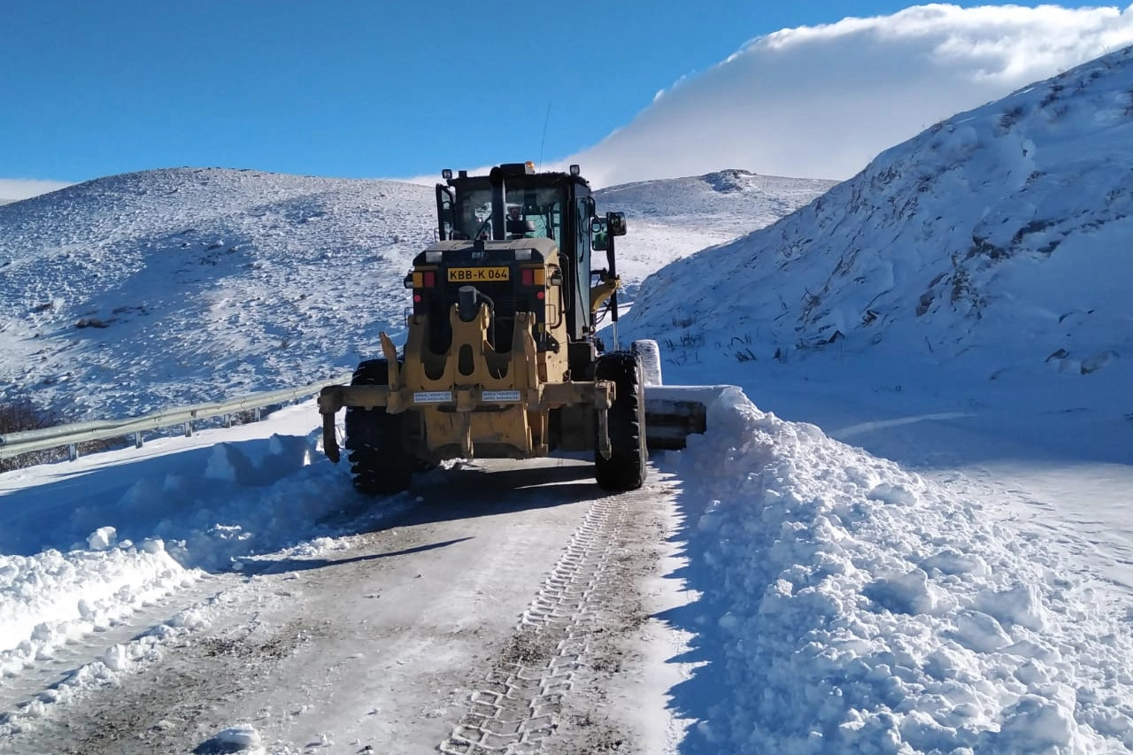 İl Özel İdaresi ve Karayolları ekipleri, iş makineleri yardımıyla karla mücadeleye devam ediyor.