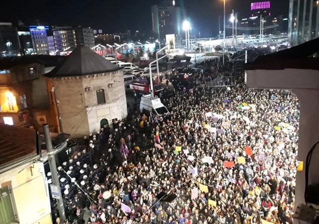 Polisin İstiklal Caddesi'nde Fransız Kültür Merkezi sonrası yürüyüşe izin vermemesinden dolayı kalabalığın Taksim Meydanı'na doğru ilerlediği belirtildi. Ardından polisin gösteriye müdahale ettiği ve kadınları Taksim Meydanı'na doğru ittiği belirtiliyor.