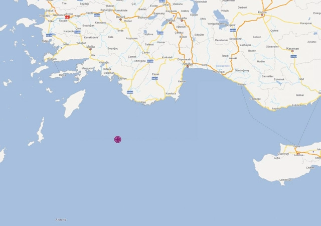 Depremin merkez üssünün Kaş'a yaklaşık 92 kilometre uzaklıkta olduğu tespit edildi.