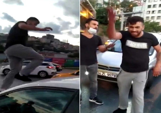 Saldırgan kadının kullandığı otomobilin ön camını kırdı. Kadın da olayı cep telefonu ile kaydederek, saldıran kişiye tepki gösterdi. Çevredeki vatandaşların yardımıyla olay büyümeden engellendi.