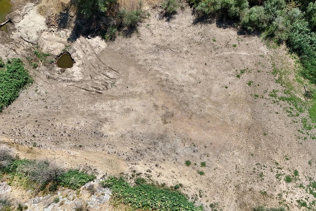 Suyu çekilen dere yatağında çatlaklar oluşurken, derenin bazı bölgelerinde ise otların yeşerdiği gözlemlendi.