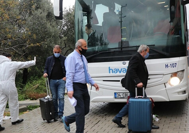 Belarus'tan uçakla ilk İstanbul'a gelen 43 kişi, 2 otobüs ile Yalova'ya getirildi.