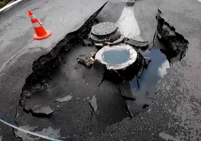 İstanbul'da Beşiktaş ilçesinde sağanak yağıştan dolayı yolda çökme meydana geldi.