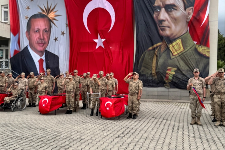 Aileleriyle Kara Hasan Paşa Kışlası'na giden 14 engelli genç, saç tıraşı olup üniformalarını giymelerinin ardından eğitim alanına çıktı.