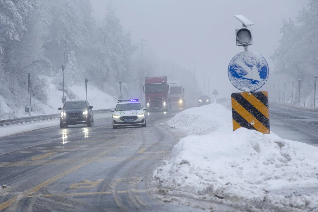 Güzergahta görev yapan trafik ekipleri, sürücüleri yağışa karşı dikkatli olması, kış lastiği bulunmayanların güzergahı kullanmaması yönünde uyarıyor.