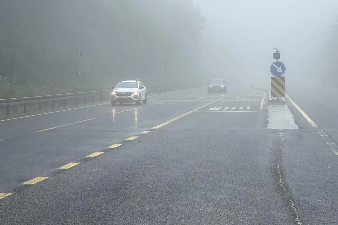 Görüş mesafesinin yer yer 25 metreye kadar düştüğü güzergahta sürücüler, yolda yavaş ilerledi.