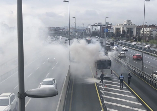 Metrobüsün motor kısmında aniden çıkan yangın sonrası bölgeye itfaiye ekipleri geldi.