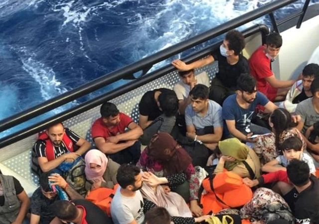 Yunanistan Midilli Adası'na geçmeye çalışan farklı ülkelerden tam 145 kişi, ahşap tekneyle Ayvacık Sahili'nden Ege Denizi'ne açıldı.