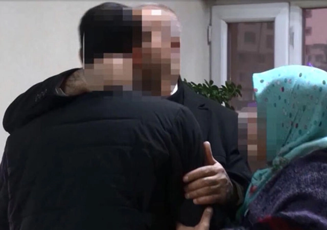 Duygusal anlara şahit olunan buluşmada oğulları Ö.Ç'ye sarılan anne ve baba, 5 sene sonra evlatlarını bağrına bastı.