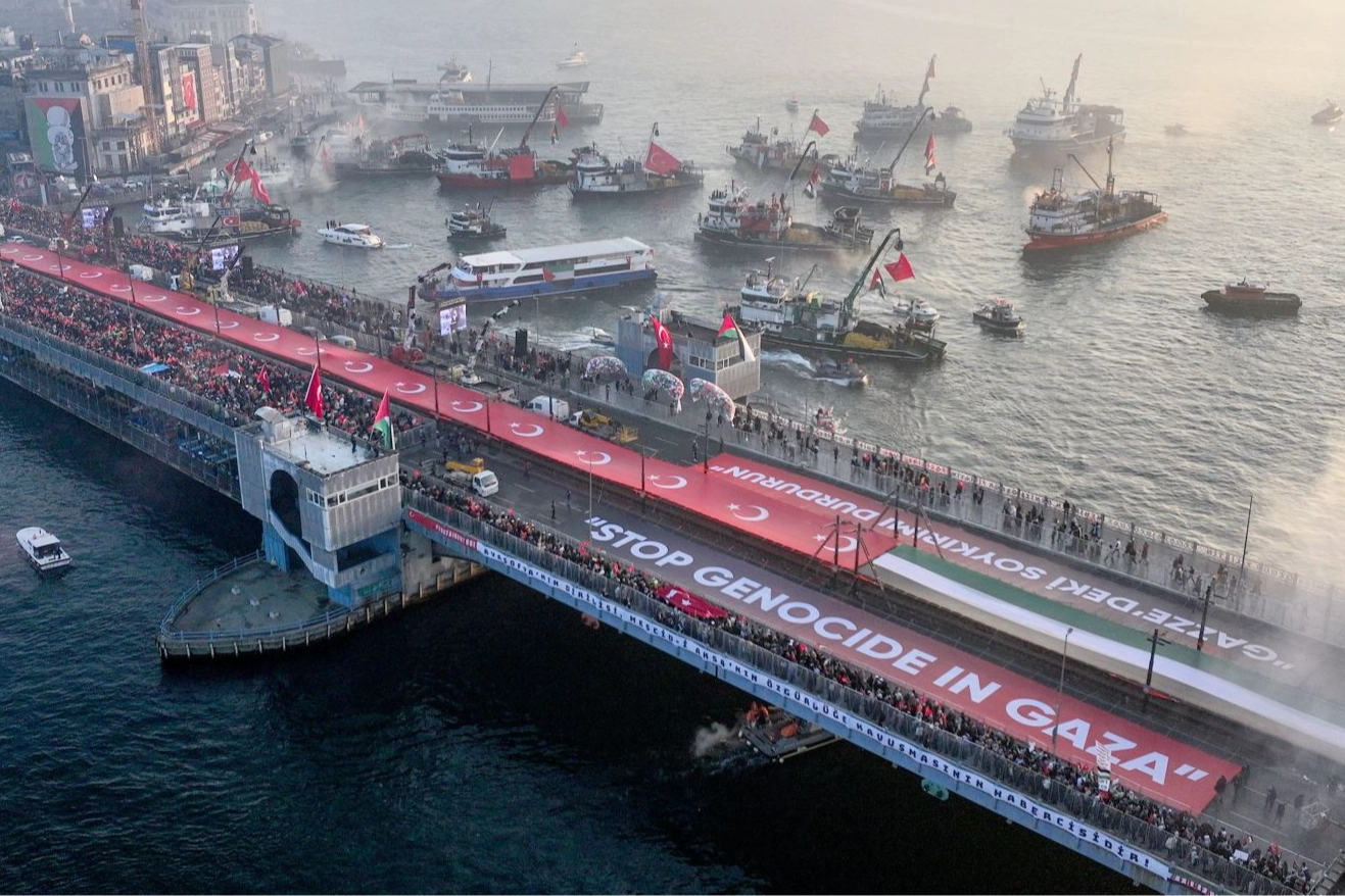 "Bu pazar Beyazıt'tan Ayasofya'ya yürüyeceğiz. Büyük kalabalıkla. Türkiye'de eylemleri tekrar başlatacağız. Dünyada eylemleri başlatacağız. İsrail eskisi kadar rahat değil. Çünkü artık karşısında eski Suriye yok. Eski Türkiye de yok. Eski Mısır halkı da yok. Eski Ürdün halkı da yok. Artık insanlar korku elbisesini çıkardı."