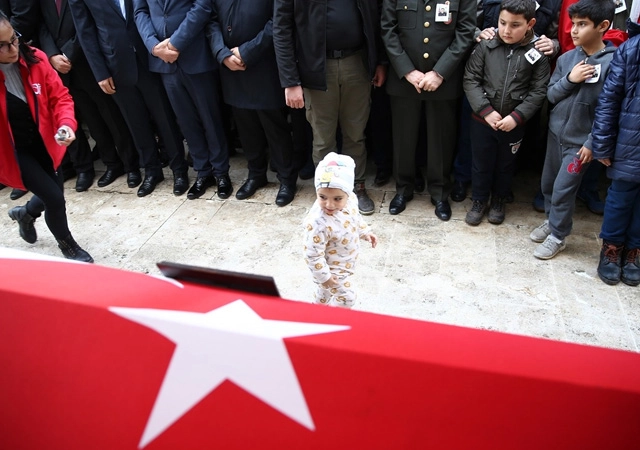 Etrafta dolaşan şehidin 1,5 yaşındaki oğlu Uygur Cankara, törende bulunanları üzüntüye boğdu.