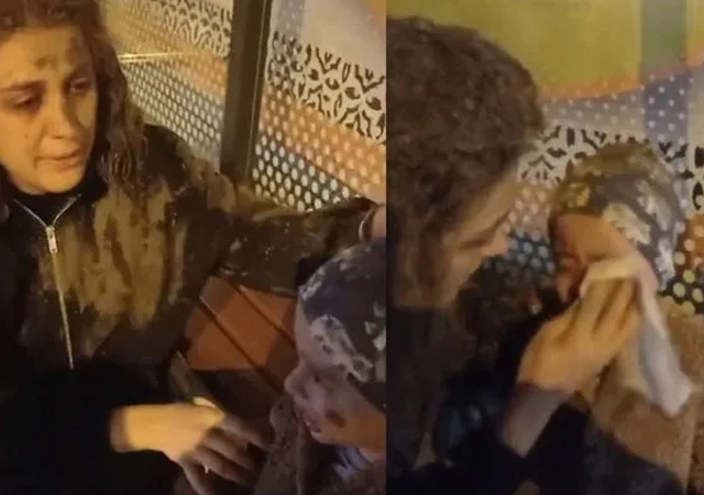 Pompadan dökülen harç, o esnada kaldırımda yürüyen anne ve 2 yaşındaki oğlunun üzerine döküldü.