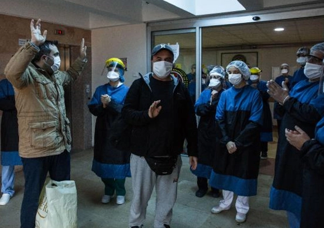 Sağlık çalışanlarının alkışlarıyla evlerine gönderilen Kılınç ve Çolo, vatandaşlardan evde kalmalarını istedi.