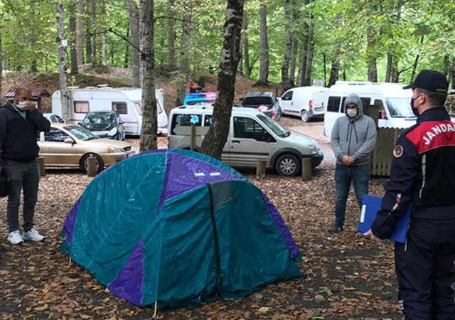 Ekipler tarafından çadır kamp alanı bölgesinde çadır kamp yapan Ankara'dan gelen 2 kişinin koronavirüs temaslısı olduğu belirlendi.