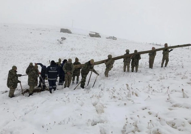 Bunun üzerine arızayı gidermek için karla kaplı araziyi yaya tırmanarak bölgeye ulaşan ekipler, bir yandan ağaç direkleri taşıdı bir yandan da olumsuz hava şartlarıyla mücadele etti.