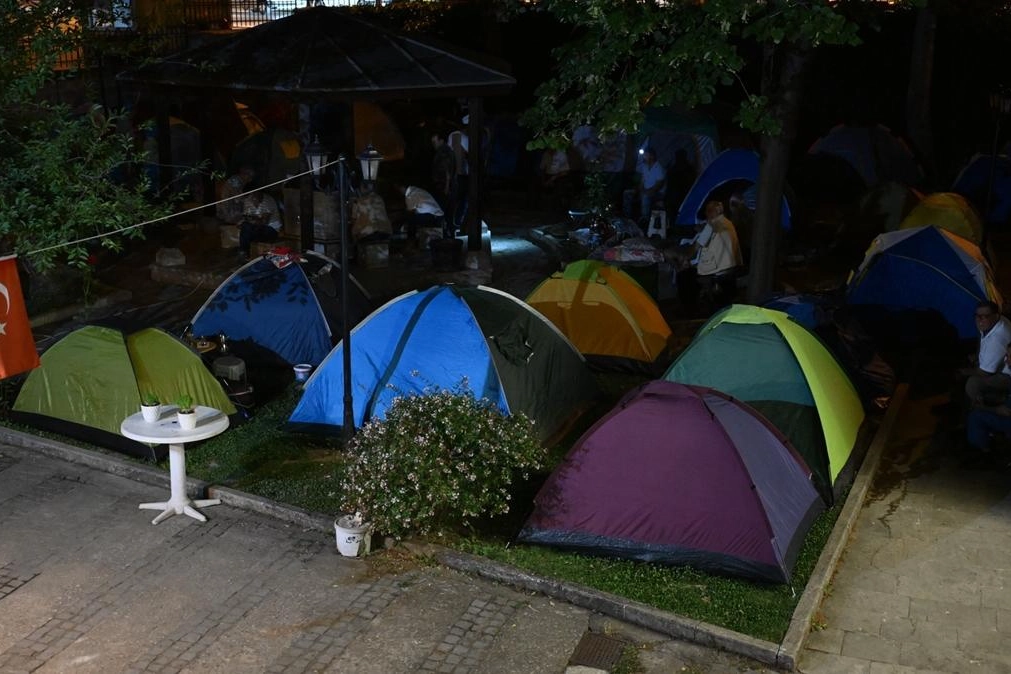 Geceden itibaren cami çevresine yerleşen bazı ziyaretçiler kurdukları çadırlarda uyurken, bazıları da serdikleri kartonların üzerinde sabahladı.