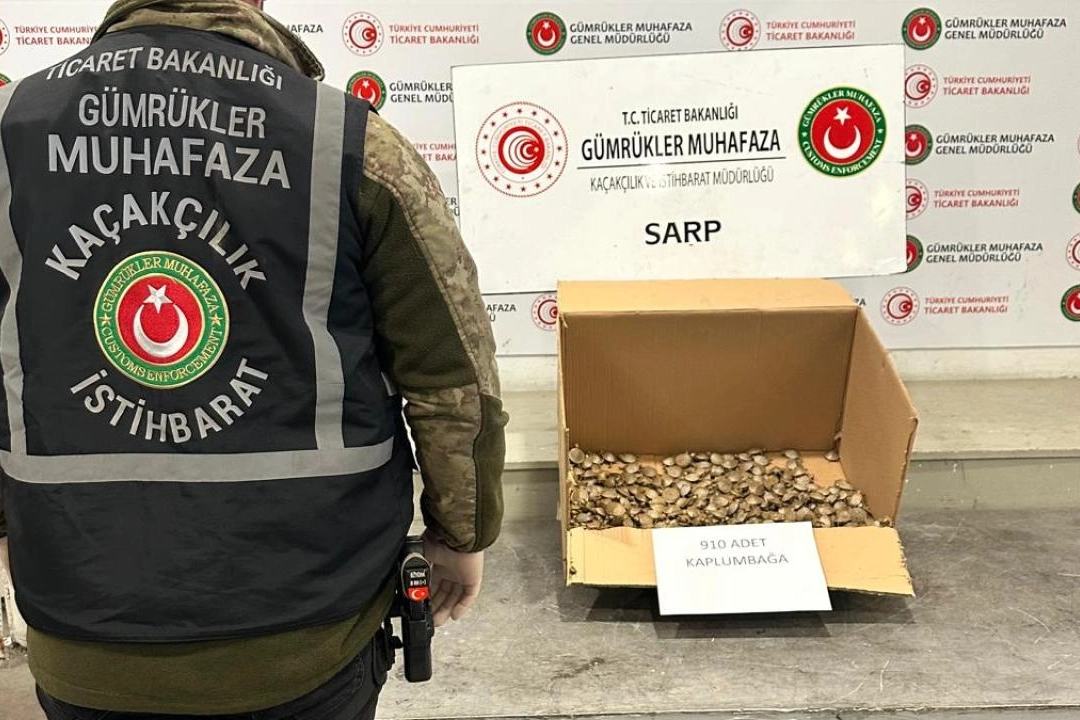 PİYASA DEĞERİ 655 MİLYON LİRA Sarp Gümrük Muhafaza Kaçakçılık ve İstihbarat Müdürlüğü ekiplerince gerçekleştirilen detaylı aramalarda değeri 655 milyon Türk lirası olan 910 adet su kaplumbağası yurda yasa dışı yollardan sokulmaya çalışılırken ele geçirildi.