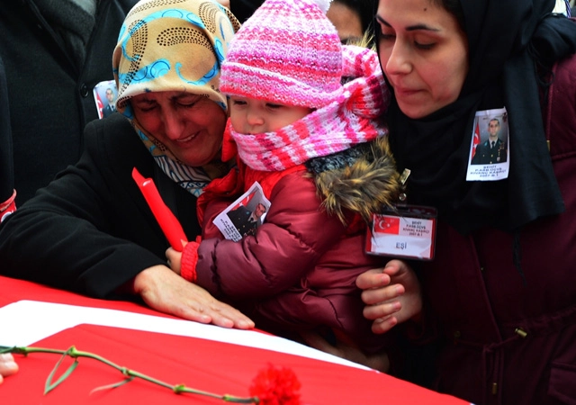 BABASININ TABUTUNA TÜRK BAYRAĞI BIRAKTIŞehidin anne, babası, kardeşi ve eşi sık sık tabuta sarılıp, gözyaşı döktü. Erdinç Kaşıkçı, ağabeyinin tabutu başında elinde fotoğrafıyla bekleyip, bir an olsun ayrılmadı. Şehidin tabutu başına getirilen minik kızı Yağmur da çevredesindeki ağlayanlardan etkilenerek, hıçkırarak ağladı. Bir ara elindeki küçük Türk bayrağını babasının tabutuna bırakıp, dokunan Yağmur, daha sonra yakınları tarafından eve götürüldü. Kaşıkçı Ailesi daha sonra camide kendilerine ayrılan bölümde taziyeleri kabul etti.