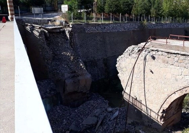 Doğal olmayan heyelan riski altında olan tarihi köprü son dönemde yağışların da etkisinden dolayı yıkıldı.