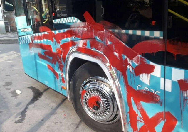 "Abim seyir halindeyken kırmızı ışıkta durmuş. O sırada bir yolcu gelerek kapıyı açmasını istemiş. Durak harici yolcu almamız yasak olduğu için kapıyı açmamış. Sonrasında şahıs taksiyle takip etmeye başladı. Bir başka ışıklarda taksiden inip otobüsün yanına gelerek camları yumruklamaya ve küfür etmeye başladı. Bu şahıs taksiye binerek 14B'nin son durağına kadar otobüsü takip etmiş. Burada diğer şoför arkadaşlarla arkada çay içip dinlenirken o esnada şahıs, otobüsü sol tarafından arka plaka kısmına kadar kırmızıya boyamış" diyerek konuştu.