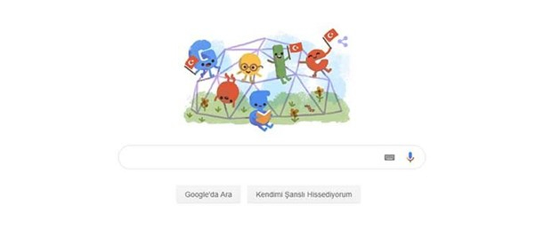 Arama motoru google, 23 Nisan ve Ulusal Egemenlik Çocuk Bayramı'nı unutmayarak bir Doodle yayınladı.