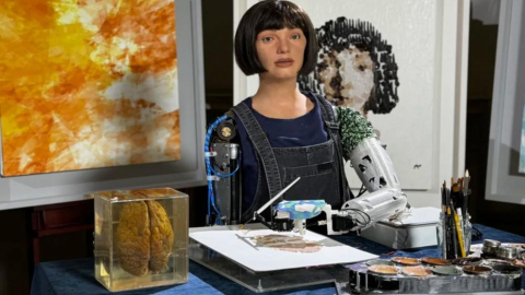 Ai-Da, kameralarla donatılmış gözleri ve robotik kollarıyla resim yapıyor ve geçmişte Birleşik Krallık'ta Lordlar Kamarası'nda da bir konuşma yapmıştı.