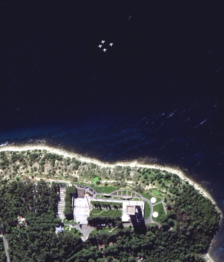 Milli Savunma Bakanlığı (MSB), Hava Kuvvetleri Komutanlığına ait 4 adet T-38M uçağının Çanakkale Şehitler Abidesi üzerinden yaptığı saygı geçişi, GÖKTÜRK-1 yer gözlem uydusu tarafından kayıt altına alındı.