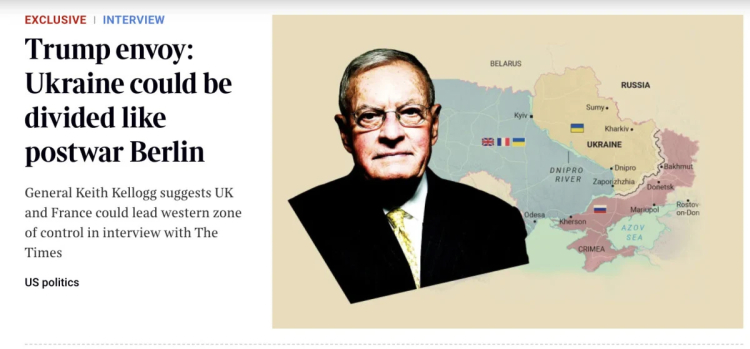 General Keith Kellogg, ülkenin farklı kontrol alanlarına ayrılabileceğini, batıda bir “güvence gücü” çerçevesinde İngiliz ve Fransız birliklerinin, doğuda ise Moskova güçlerinin bulunabileceğini söyledi.